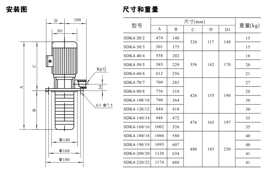 SDK4/SDKT4為配用標(biāo)準(zhǔn)電機的非自吸立式多級離心泵,電機軸和泵軸用聯(lián)軸器直接聯(lián)接的結(jié)構(gòu)。為滿足水槽或容器的安裝深度,可安裝空套的腔體來改變泵本身的侵入 深度。
