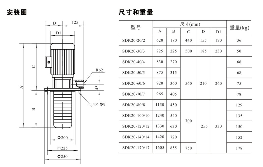 SDK20/SDKT20為配用標(biāo)準(zhǔn)電機(jī)的非自吸立式多級(jí)離心泵,電機(jī)軸和泵軸用聯(lián)軸器直接聯(lián)接的結(jié)構(gòu)。為滿足水槽或容器的安裝深度,可安裝空套的腔體來(lái)改變泵本身的侵入 深度。