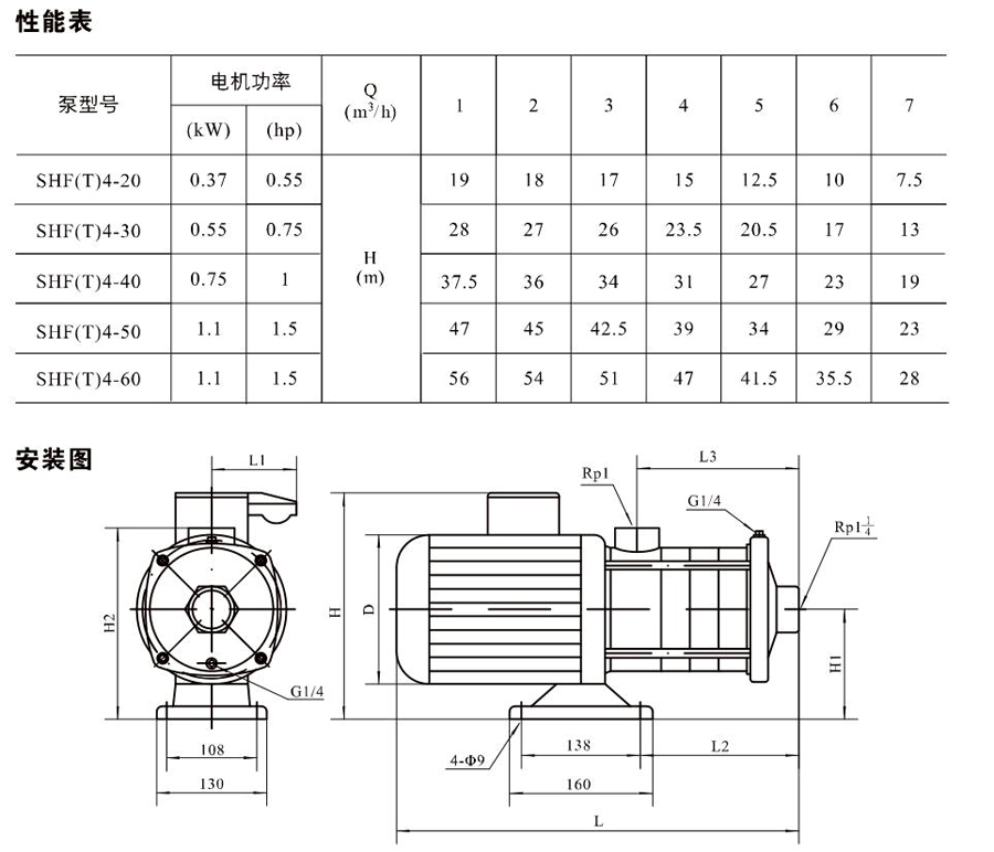SHL/SHF/SHFT4為臥式多級非自吸多級離心泵,配加長軸電機(jī)。緊湊式結(jié)構(gòu)使泵尺寸很小,軸向入口或徑向出口。