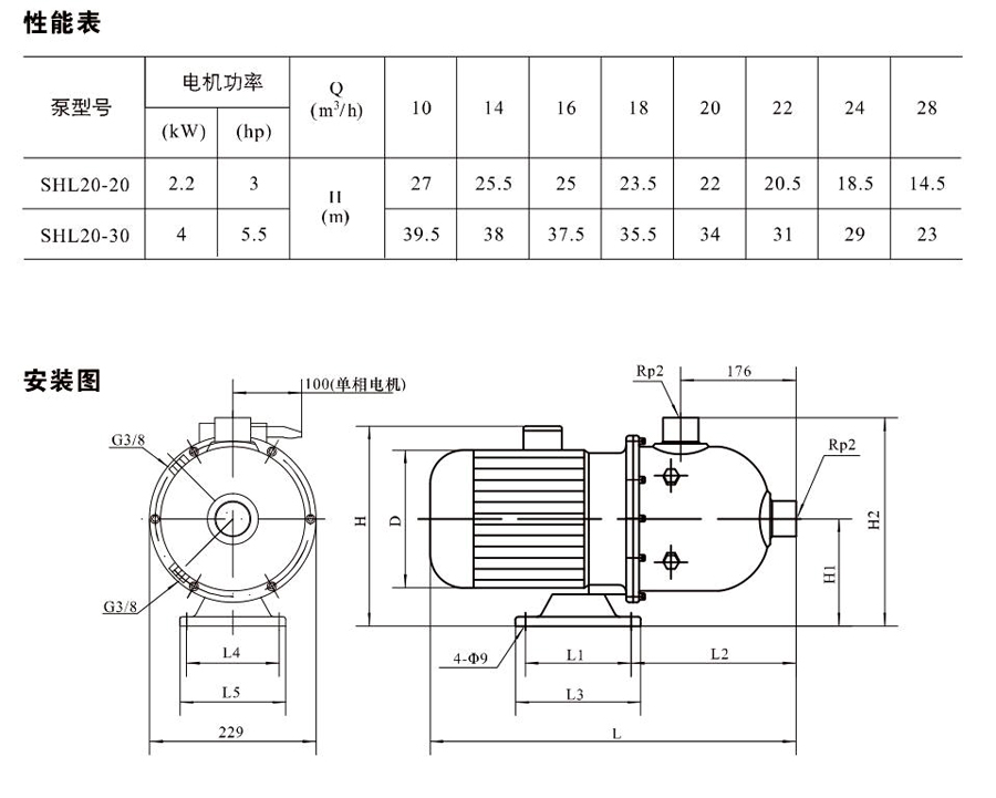 SHL/SHF/SHFT20為臥式多級非自吸多級離心泵,配加長軸電機(jī)。緊湊式結(jié)構(gòu)使泵尺寸很小,軸向入口或徑向出口。